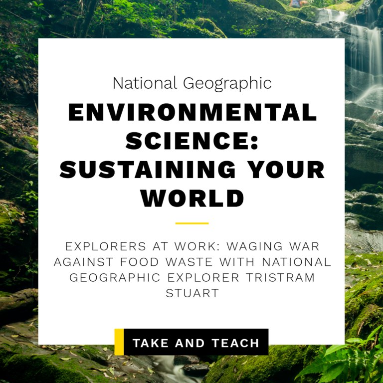 • In the Environmental Science: Sustaining Your World – Waging War Against Food Waste take & teach lesson plan, students join National Geographic Explorer Tristram Stuart in an eye-opening investigation of global food waste and its environmental and social impacts. Through powerful maps, critical thinking activities, and inspiring real-world examples, learners explore the shocking reality that one-third of the world’s food goes uneateneven as millions face hunger.